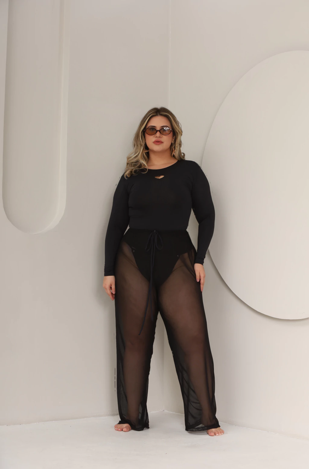 Modelo blusa UV com coração vazado.